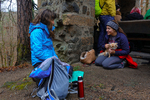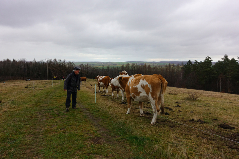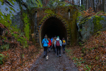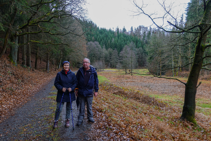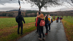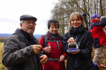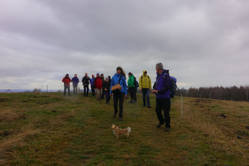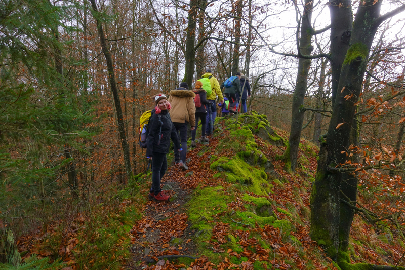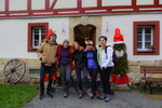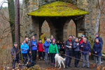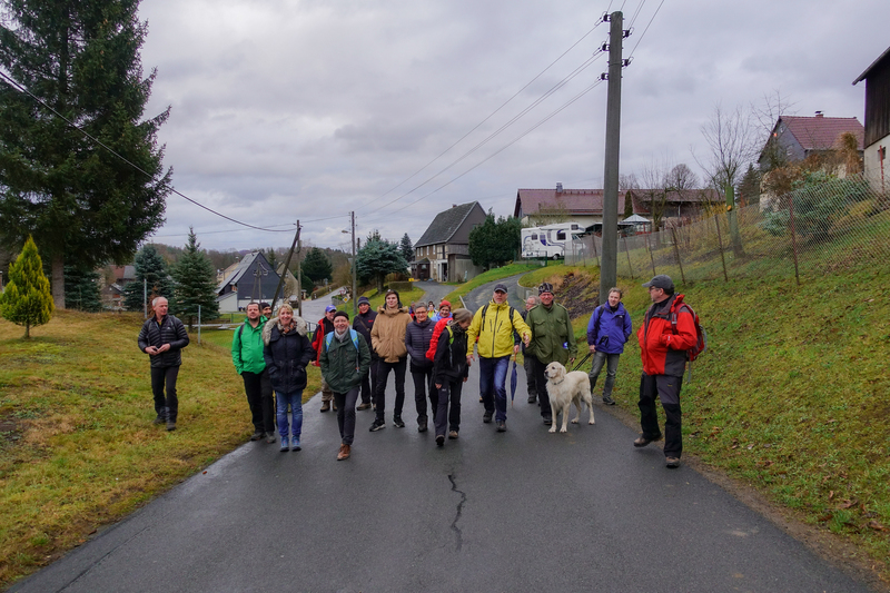 Am Sonnabend war eine größere Wanderung geplant, dieses Mal nicht in Richtung Brandgebiet. Wir wollten die Gegend östlich von Hohnstein und das Schwarzbachtal erkunden. So ging es über die Waitzdorfer Höhe steil hinauf, über windige Höhenrücken, Felder und Weiden hinüber nach Goßdorf, einem hübschen, kleinen Dörfchen am Rande der Sächsischen Schweiz. Über das Goßdorfer Raubschloß, die Ruinen einer alten Raubritterburg, erreichten wir das Schwarzbachtal. Aber vorher wurde zwischen den alten Mauern eine Pause eingelegt, um den sich einstellenden Durst zu stillen. Steil führte der Pfad hinunter zum Schwarzbach. Über alte Holzstufen und feuchtes Blattwerk durfte man sich keinen Ausrutscher erlauben. So langsam stellte sich auch der Hunger ein, immerhin waren wir reichlich 3 Stunden unterwegs. So war es gut, dass in Lohsdorf im Landgasthaus zum Schwarzbachtal reserviert war. Für 30 Leute ist das in jedem Fall ratsam. Nach einer leckeren Mahlzeit ging es auf kürzerem Wege zurück zur Grundmühle, wo der Kaffeetisch schon gedeckt war.