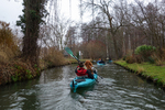 Wie schon seit vielen Jahren ist die Star Tankstelle um 8.00 Uhr unser Treffpunkt in Guben. Da mittlerweile einige Mitglieder aus Sachsen und Potsdam anreisen, ist die nächste Anlaufstelle der Bootsverleih im Spreewald, dieses Jahr das Bootshaus Rehnus in Burg. Da war für jeden etwas dabei: Kajaks und Kanadier wurden aus dem Winterschlaf geweckt. Langjährige Übung ließ das Einbooten rasch und reibungslos über die Bühne gehen. Und dann war es wieder soweit: Im Boot durch den winterlich romantischen Spreewald gleiten, die Ruhe genießen, mal wieder tief durchatmen, die gleichmäßig fließenden Bewegungen spüren… eben rundherum erholen, den Alltag vergessen und mit Gleichgesinnten einen schönen Tag verbringen. Unsere obligatorische Verschnaufpause nach ungefähr zwei Stunden Paddelei haben wir auch heute nicht vergessen. Irgendwo weit draußen haben wir auf einer der typischen Spreewaldwiesen unser Lagerfeuer entfacht. Dann wurden im Hordentopf der Glühwein erhitzt und über der Glut die verschiedensten Leckereien gegart, meistens Würstchen am Spieß. Ja, na klar… so viel frische Luft macht natürlich auch hungrig… und durstig. Die Rückfahrt gestaltete sich etwas schneller, da ein leichter Nieselregen einsetzte…jedoch mit der richtigen Ausrüstung bleibt man auch im Boot trocken. Eine defekte Schleuse musste umtragen werden, was nach der Stärkung kein Problem darstellte. Wir waren tatsächlich nicht die einzigen Lebewesen, die unterwegs waren: neben den verschiedensten Wasservögeln haben wir auch einige Nutrias beobachten können, die keine Lust auf Winterschlaf hatten. Einer von ihnen begleitete uns direkt ins Bootshaus Rehnus zurück, der war wohl ganz angetan von der kleinen Abwechslung im öden Wintereinerlei. Auf dem Rückweg sind wir noch auf einen Kaffee im Burger Landhotel eingekehrt, was die gemütliche Runde und den schönen Tag passend ausklingen ließ. Und in einer Sache waren wir uns wie immer einig: besser kann man den 2. Weihnachtsfeiertag nicht feiern! Also Freunde, auf ein Neues! Nächstes Jahr um dieselbe Zeit… Vielen Dank an Thomas, der sich um den Bootsverleih kümmerte. Und Euch allen wünsche ich ein schönes und erlebnisreiches Jahr, damit es am Ende wieder viele spannende Geschichten zu hören und interessante Bilder zu sehen gibt.